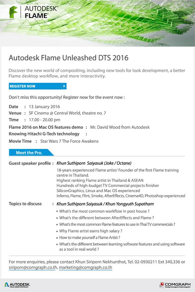 เรียนเชิญเข้าร่วมงาน Autodesk Flame Unleashed DTS 2016