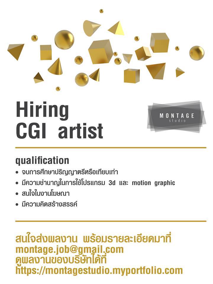 - มีความชำนาญในการใช้โปรแกรม 3D MAYA/3dMaxs/ Zbrush/ Modo