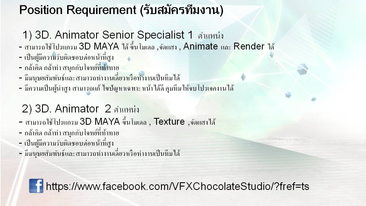 1) 3D. Animator Senior Specialist 1 ตำแหน่ง