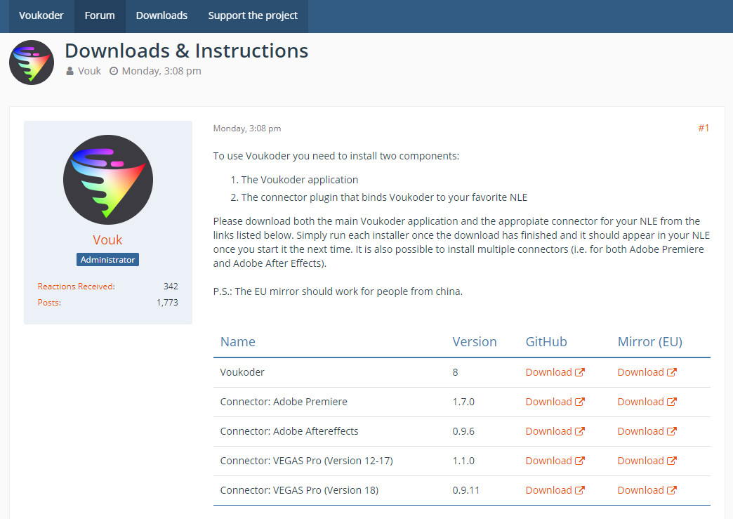 ขั้นตอนก็คือ ไปโหลด Voukoder มาลง แล้วเราใช้โปรแกรมตัดต่ออะไร ก็ไปโหลดตัวเสริมของโปรแกรมนั้นมาลงด้วย มันจะอยู่ในหน้า Download ทั้งหมดนั่นแหละ