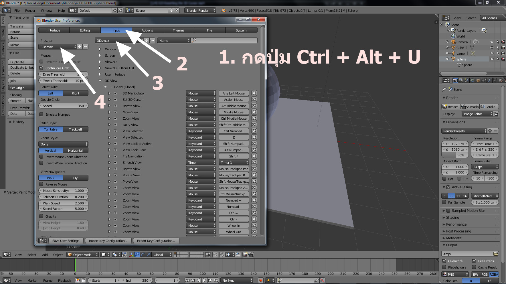 ท่านที่ใช้ 3ds Max หรือ Maya มาก่อนแล้วมาเล่น Blender ทีหลัง จะมีปัญหาใหญ่อันแรกเลยก็คือ ต้องมานั่งจำ shortcut กันใหม่เกือบหมด ไอ้พวกคำสั่งซูมเข้าออก หมุนหน้าจอ อะไรทำนองนั้น อันนี้ทาง Blender ก็คิดวิธีมาให้เราแล้ว ก็คือ มีคำสั่งแปลง shortcut ให้เป็นโปรแกรมที่เราคุ้นเคยไปเลย จะได้หมดปัญหาในการที่เราต้องมานั่งจำกันใหม่