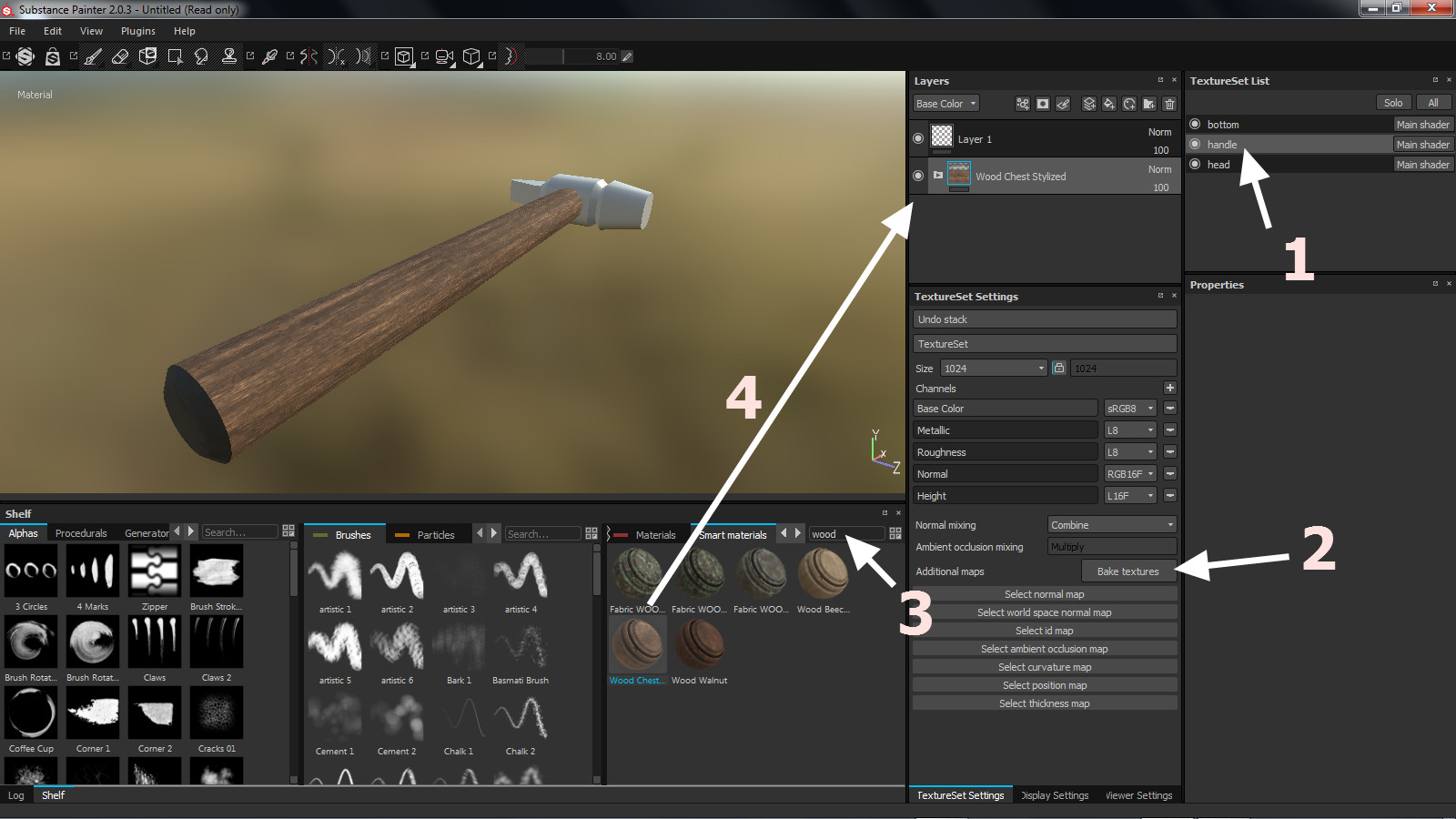 Substance Painter ถ้าอธิบายแบบสั้นๆ ก็คือโปรแกรมที่เอาไว้ใส่ texture นั่นเอง เช่นในตัวอย่างนี้จะทำค้อน เราก็ทำโมเดลให้เสร็จ แล้วเราก็จะไปใส่ด้ามจับให้เป็น texture ไม้ ให้ตรงหัวค้อนเป็น texture เหล็ก ตรงท้ายของด้ามก็เป็น texture ยาง อะไรทำนองนั้น