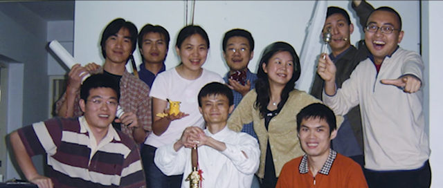 แจ๊ก หม่า ย้อนมองภาพถ่ายเพื่อนร่วมงานเก่าๆ ที่แขวนบนผนัง ที่เริ่มต้นจากคน 18 คน จนปัจจุบันมีพนักงานประจำมากกว่า 66,000 คน ผมหวังว่า อีก 60 ปี ต่อจากนี้ 80 ปี หลังจากนี้ ผู้คนจะยังคงจำอพาร์ทเมนต์ห้องนี้ เราไม่ควรลืมความฝันที่เราเคยมีด้วยกันที่ห้องแถวนี้ (ภาพจาก Jack Ma Returns to Hupan Garden: Birthplace of Alibaba)