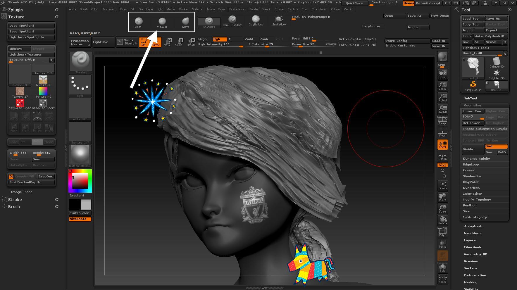 การทำอีพวกลอนๆ เส้นผม ก็ใช้ brush ชุดนี้เลยครับ ตบๆ ดึงๆ รูดๆ ขูดๆ ได้ฟิลเหมือนปั้นดินเลยพี่น้อง