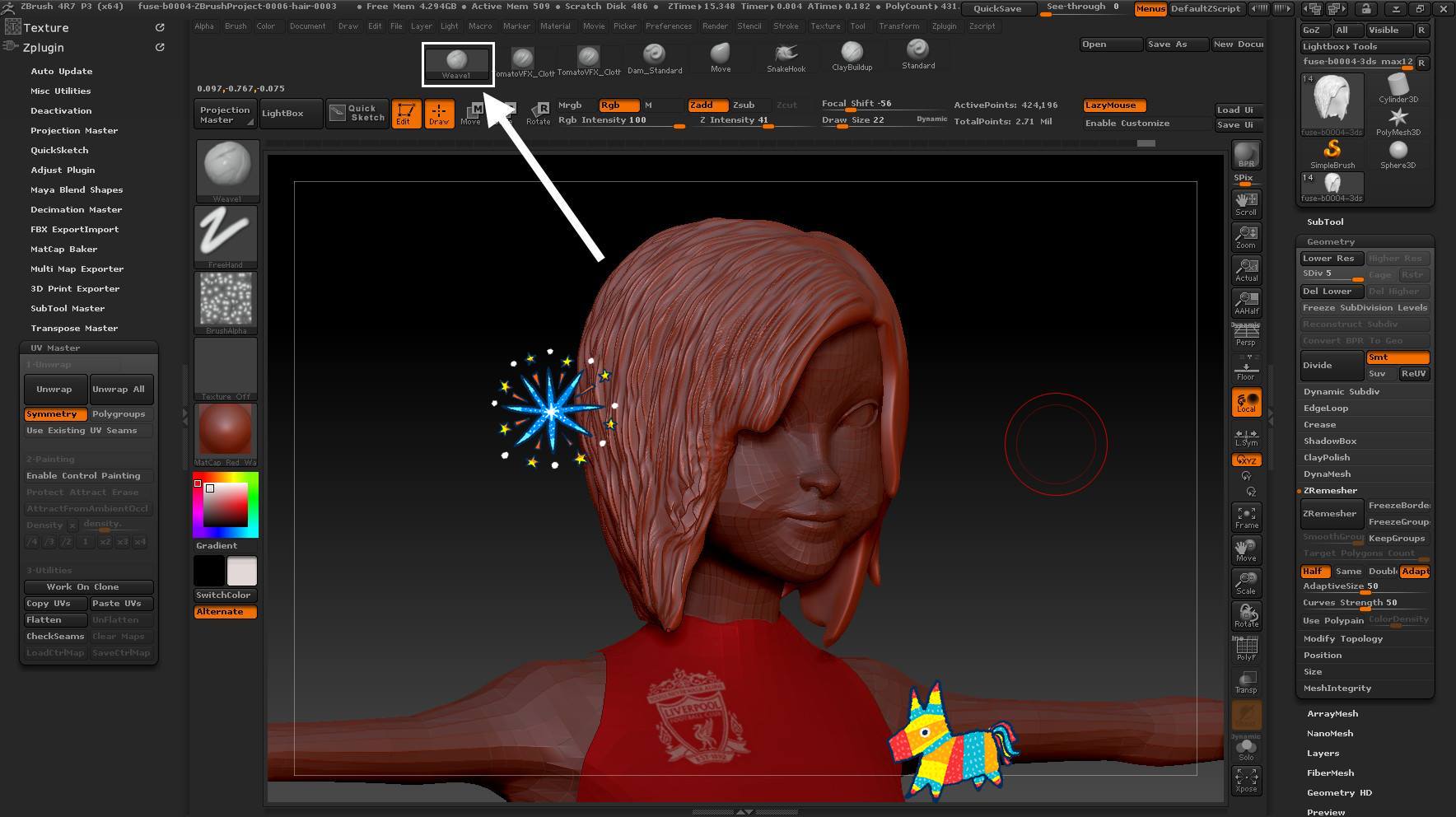 ...เวลาดูพวกเส้นผมของการ์ตูน 3D บางเรื่องเนี่ย สงสัยมานานแร่ะว่ามันทำให้ทรงผมเป็นร่องๆ ได้ยังไง ... คำตอบก็คือ มันใช้ brush แบบ Weavel นั่นเอง ปาดแล้วมันมาเป็นร่องเลยครับพี่น้อง